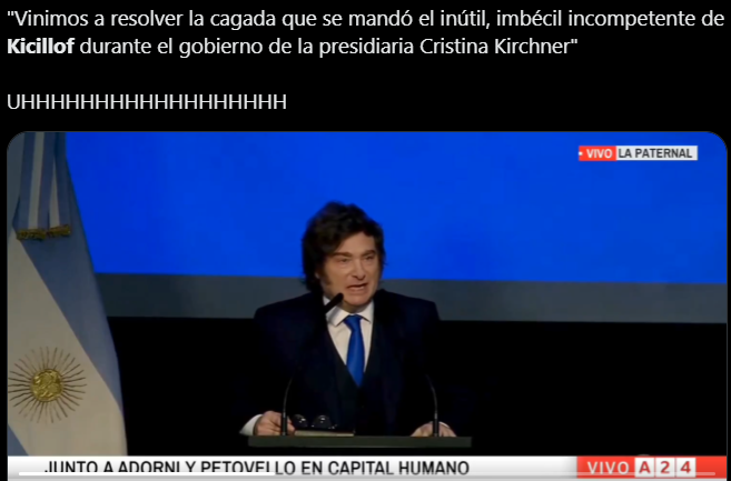 “Vinimos a limpiar judicialmente las cagadas de Kicillof” dijo Milei como punto cúlmine de la incongruencia. La nacionalización de YPF decidida por Cristina Kirchner y ejecutada por el ahora gobernador de Buenos Aires y exministro de Economía, salvó al gobierno de Milei de la escasez de dólares. Si la petrolera seguía en manos de los españoles, nunca se habrían descubierto ni explotado los yacimientos de Vaca Muerta que convirtieron al país en exportador de hidrocarburos.