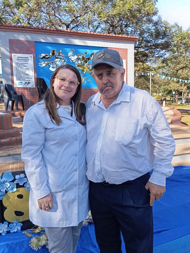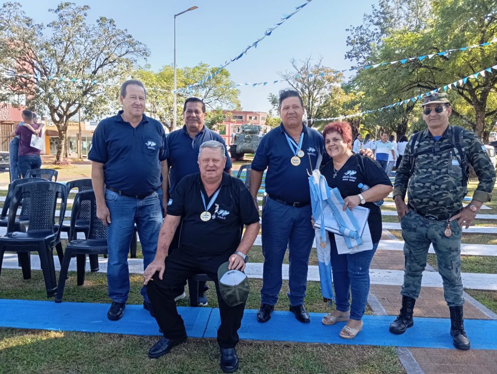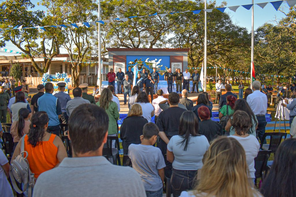 Un momento de especial carga simbólica fue la lectura de la carta del teniente primero Roberto Estévez —uno de los nueve misioneros caídos en combate— a cargo del veterano Oscar Valiente. El acto incluyó la entonación del Himno Nacional Argentino con el acompañamiento de la Banda del Regimiento de Infantería de Monte XXX. La Milicia Patriótica y veteranos depositaron ofrendas de laureles en representación del pueblo, y el acto cerró con un minuto de silencio en honor a los caídos.