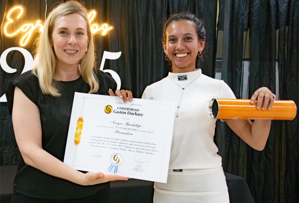 En el marco del acto, la Universidad otorgó además la distinción de Graduada Notable a la Contadora Ingrid Romina Faccio, actual Intendente de Wanda, por su trayectoria profesional y su aporte al desarrollo institucional y comunitario, reafirmando el impacto positivo de los egresados de la UGD en la gestión pública y el liderazgo regional.