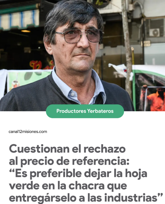 No se implementaron medidas alternativas para corregir las distorsiones propias del mercado imperfecto de la yerba mate, para que los productores primarios obtengan un precio justo por la hoja verde.